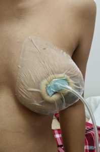 However, there are limitations to the consideration of using the SNAP therapy for such infected wounds. The wound bed should be well vascularised, relatively shallow, and are relatively clean following debridement. The wound should ideally be less than 10 by 10cm and not have exudates more than 80ml over 3 days. [7] Given the proper patient selection, the experience with SNAP therapy application is generally positive with the process being hassle free and well tolerated. There was also little hindrance to the patient’s mobility, shoulder and arm movement due to the lightweight nature of the system, making it ideal for patient profile and wounds of such nature. Lastly, upon completion of the therapy, there is no significant deformity to the natural breast shape or alteration of the appearance, position and sensation of the NAC to suggest complication from the SNAP therapy application.