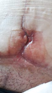 Wound: dated 17 December the wound was 3.6 X 4.6. a prurulent bed-sore with erytematous perliesional skin.